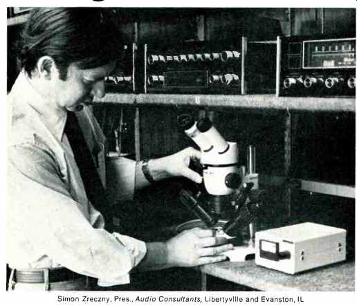 Oh, boy, is the disc alive and well! Far from dying as has so often been predicted, it is now likely to become one of the most important of our recording media both as entertainment, on a much wider scale than at present, and strictly business, for information storage. Maybe Edison was right when he launched. his phonograph as the stenographer's dream machine. ![]() Of course, I am not talking about the present standard disc, the venerable LP and its junior sibling the little 45, now respectively a bit over 30 and 29 years on the market. What I mean is the next generation of disc ERA IV a la Shure, counting from the original acoustic shellac a new superdisc family that will at last close the appalling technological gap that has developed over these years between the LP and current disc capability. That gap is already greater than the one which was closed in 1948 when LP took over from the 78, then a half-century old, acoustic and electric. When the present enormous gulf is at last closed, as between standard and possible, we will have a true revolution in hand, in the classical pattern. That is, much more than the mere parameters and system of the present disc will be replaced. The platter, as we know it in the entertainment area, at least, will no longer exist. An immense rearrangement, an upheaval! I wonder which will come first, this or the next California earthquake? The odds are not very different. Our forces of technology do, in fact, build up very much as do those of the big quakes, though fortunately they are not let loose as suddenly. New methods, new ideas, new know-how, new processes, new R & D, all these keep right on proliferating, in our field as in others; and yet because there is already an operating standard, very little can be directly applied. Everything funnels through the necessary parameters of the standard or is put aside. And the more successful and extensive is that standard operating system, the greater is the vested interest in its status quo. Thus the big slowdown and the larger the gap grows, the greater are the forces required to overcome, to establish the new. Earthquake building. Nothing wrong! Please don't think that "old" or "established" means something nasty like reactionary! The LP record and system is NOT reactionary indeed, in its own way, it is the opposite, still active, mature, still moving forward, an enormously successful system, and a useful one. After all, what would we do without standards, long enduring, even beyond their time? Such as, say, railroad track width, the numbers in a round dozen, the ounces in a pound. You can name a hundred that are rightly under challenge though of honorable descent. Go metric! Go binary. Throw out the d (British old penny) in favor of the p (new penny). How ingenious and wise of the British to toss away their duodecimal-and-worse coinage in favor of decimals with so very small an upheaval! What we must always do in these overdue catch-up operations is to minimize the human earthquake that is inevitable, do what we can to make useful links, maximize the benefits and reduce the hurt. In England you can still spend a shilling anywhere in the actual metal, or a florin, or sixpence. They even fit the slot machines. And so right now we are working on a few disc links, ahead of time, to help us over that vast technological gap in disc potential between the present LP/ 45 and the violently different discs that are inevitably coming, to bring us to up-to-date standards. What'll you bet that the first of these you will see will be, by no coincidence, 12-inch platters, pressed in existing plants out of plastic of a normalish sort, and probably stuck into present paper envelopes and cardboard jackets, shipped in existing cartons and stacked up on regular record shelves? That's the idea. But what a very different record this will be. Compatible Collusion So, it is save what you can, cushion the quake, be reasonable, lessen the shock, spread the load, salvage the salvageable. Plenty of salvage, even in such a relatively ancient system as LP and with such an incredible distance to jump. There's a word for this. Compatibility! Its purpose is ever the same, to help in a difficult transition. Sometimes better, sometimes worse, like, say, the "all-groove" needle, the stylus that would play (more or less) both 78 and LP grooves, or the much less disastrous turnover-style double cartridge. And where do you think our present handy semi-plug in cartridges got their form? Same place alternative plug ins for the two grooves. So it's not sauve qui peut, before this revolution, but save sensibly. And in these last few brief years each new prototype disc of the coming generation has shown more awareness of this critical aspect of change that, to me, denotes real progress. What we are doing today, and must do for a good while, is to live on two planes at once. We watch the new discs develop and approach marketability maybe. And we go right along with the old disc. Curiously, though, this necessary double standard is surprisingly difficult for most of us to understand and evaluate even for those who are highly knowledgeable in a technical way. Maybe worse for them. It is much more than merely living with the old and the new, perforce. We must give them true equality, however different they are. Now that involves a lot more than you may think. After all, there is that gap, and the comparative performance figures for the old and the new, so incredibly different. It's easy to sound off about the new technological marvels and the utter obsolescence of the silly old LP or, oppositely, mutter away about visionary money-wasting and the importance of the tried and true and a mature, workable, successful existing system. We can't think either of these ways. We must think equality. Different, but equal and, moreover, interdependent. So even our thoughts, in the engineering and in the home playing, must exist on two planes, both continuing, both sh