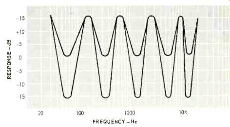 Ranges: 40, 80, 160, 320, 640, 1,280, 2,500, 5000, 10,000, 15,000 and 20.000 Hz. Lift and cut: plus or minus 16 dB, or plus or minus 8 dB. Slope: 12 dB per octave. Input impedance: 100 k ohms. Output Impedance: 200 ohms. Frequency response: plus or minus 0.25 dB. 20 to 20 kHz. Maximum output: 7 volts. Distortion: IM and THD less than 0.1% at 2.5 volts output. Hum and noise: 90 dB. Dimensions: 17 inches wide by 7 inches deep and 5.25” high. Price $450. The only thing equalizers, as a family of equipment, have in common is that they all operate on the frequency response of the signal passing through them. At one extreme we have the garden variety of tone controls which shape the frequency spectrum broadly and coarsely. While on the other extreme there are equalizers which can control a narrow band of just a few Hertz in calibrated decibel steps. Some equalizers give boost as well as loss to the passing signal; others just loss. Some work in one particular region, serving a special purpose, while others operate throughout the audio frequency spectrum with varying degrees of frequency resolution. For sound reproduction, the narrowest band useable is 1/3 octave wide because the 'ear doesn't resolve anything much narrower. The broadest we want are regular tone controls. There are three good reasons and two bad ones for using equalizers: 1. to change the program material; 2. to change the frequency response of the audio system; 3. to compensate for the absorption inequities created by room acoustics; 4. to compensate for loudspeaker deficiencies; and 5. to compensate for hearing loss. Reason No. 1 is a good reason to use equalizers because individual taste as to what constitutes correct or proper balance between musical sounds can now be exercised when desired. While in most cases we prefer to let the recording team do their thing by dictating frequency balance, sometimes things get out of whack by the time their creation gets reduced to disc, tape, or tape cassette, and is about to be played. Reason No. 2 is a good reason because it is so very difficult to obtain flat frequency response in a system, advertising claims to the contrary, notwithstanding. Reason No. 3 is also a good reason because equalizers can eliminate unavoidable imperfections of our listening environment to a large extent. Reason No. 4 is a bad reason and one which is often misunderstood. If a loudspeaker system rolls off at 50 Hz, it means it is incapable of operating below that region. Boosting the input to the loudspeaker below this frequency will distort the sound. If it were not so, all the loudspeaker manufacturers would have to do is reduce the efficiency of the upper frequency range drivers and we would thereby get more bass by driving the loudspeakers harder. It is fair to assume that loudspeaker manufacturers have already considered the limitations of their designs and optimized the frequency response of their product--at least as far as the frequency extremes are concerned. It is possible to boost the extremes somewhat if the loudspeaker has high power handling capability and we don't play it at its loudest. Compensation for the loudspeaker's inaccuracy in the mid-range is also tricky because it can cause ringing and play havoc with its transient response. Finally, Reason No. 5 is a good reason because it we compensate for a known ear deficiency, during listening to music at home, who will compensate the orchestra during listening to live music? After all, to the ear, regardless of deficiency, the live orchestra is the reference. To compensate for this deficiency during playback only, will therefore disorient the listener when he's hearing the real live thing. The use of equalizers is fascinating, but like most good things, fraught with danger. Equalizers need to be used with discretion that comes from learning how to use them. Used well, equalizers can significantly improve the perception by most listeners of reproduced sound. Misused, however, equalizers can ruin the balance beyond recognition, mislead diagnosis of a system malfunction and damage loudspeakers. The SAE Mark Seven Stereo Octave Equalizer, as it is called, is the best stereo program equalizer for home use that we've so far come across. Since the equalization is done in octave bands and both stereo channels are acted upon with one lever, the unit is intended and best used as a program equalizer, explained above as Reason No. 1. It might possibly be used for the second reason, but for the third-not so well. Reason No. 1 is enough, however, since the Mark Seven does this superbly. Having been thoughtfully designed and skillfully assembled, the equalizer is a natural to use and after five minutes of diddling with the smoothly gliding levers, one never wants regular tone controls again. Fig. 2---Showing filter coils on a circuit board mounted behind the front panel. The active electronic circuits and power supply are mounted on boards visible in the rear. There are ten filters with center frequencies one octave apart, starting at 40 Hz, and an eleventh one at 20,000 Hz, which is a half octave above the tenth at 15,000 Hz. 30,000 Hz would have been wasteful. Four push-buttons at the lower right corner control the operating modes. Besides the on/off and bypass controls expected, there is a range-halving control plus a tape monitor switch. See Figure 1. The range selection increases resolution of the control while the tape monitor button replaces the one on the preamp, which must now be engaged if the Mark Seven is connected in the tape loop. An alternate connection is to put it between the preamplifier and the power amplifier. For use with receivers and integrated amplifiers, however, it must go into the tape loop. That is, it receives its input from the receiver's recorder output signal and injects its output into the receiver's tape play or monitor high level input. The four stereo pairs of phono jacks at the equalizer's rear panel facilitate hook-up. 