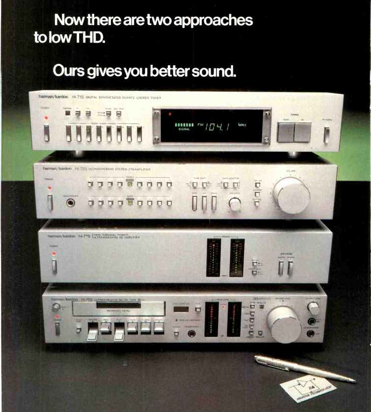 ---p4a And the rise time needed to handle a 40,000 hertz signal is half of that; 7.38µs. So what's the necessity of arise time 0.85 ps or faster? Well, some audio companies believe they need it to justify an inflated price tag. And some use it to keep your focus away from audible distortion they can't rid themselves of. IF KENWOOD AMPS HAVE A LOT HIGHER SLEW RATE THAN PIONEERS', HOW COME THEY ALSO HAVE A LOT MORE DISTORTION? Unless you own an eleven-year-old "tube job" it's almost certain the distortion you're hearing is not caused by insufficient slew rate and rise time. In fact, this most significant form of audible distortion can, at the most, be reduced with "high speed" technology. But it takes Pioneer's new Non-Switching technology to totally eliminate it. This form of distortion is known as "switching distortion." And, most likely, the reason you haven't heard of it before is because most high fidelity companies are still grappling with it. Trying to rid themselves of the audible noise that occurs every time a musical signal is handed over from one transistor to another. In more detail. Most power amps today use high-speed bipolar transistors in their output stage. Operating in pairs, one handles the positive part of the output waveform and the other the negative. The audio signal alternates between these transistors thousands of times a second. With each cycle, one transistor switches on and the other switches off. When the switch occurs so does distortion. But unlike other forms of distortion that are more noticeable at very high power levels, switching distortion is also a problem at lower listening levels. And the lower the listening level the greater the amount of switching distortion you hear. OTHERS REDUCE SWITCHING DISTORTION. PIONEER'S NON-SWITCHING TECHNOLOGY ELIMINATES IT. For years, people have clashed over which amplifiers to buy. The output transistors in a Class A amplifier are passing high currents at all times, regardless of the signal driving them. True, since the transistors never switch on and off, there's never any switching distortion. But, due to the high idle currents, over 50% of the available power is dissipated as heat. Because of this, Class A amplifiers need larger heat sinks, greater power supplies, greater size, weight, and most important, a greater price tag. A pure Class B amplifier or an AB amplifier, like the "high speed" models touted by Kenwood, are more energy efficient than those in Class A. But instead of paying through the nose for a heat producing Class A, what you're really doing is paying through the ear for an amp that produces distortion. Because transistors on Class B amplifiers constantly switch on and off. And no matter how high the speed of the amp, they can't lose the distortion that's created when these transistors begin to switch. NOT CLASS A. NOT CLASS B. BUT IN A CLASS BY ITSELF. Unlike Kenwood and other manufacturers of high fidelity who remained with the technology of the sixties to reduce the problem of switching distortion, Pioneer forged into the eighties with a new design that totally eliminates it. So impressive is this technology that it was accepted for presentation at an Audio Engineering Society convention in New York City. Pioneer's new Non-Switching Design performs like pure Class A without any of its drawbacks. This new technology instantly monitors the amplitude of the signal, and like a servo, automatically controls the amount of bias current fed to the output transistors. Unlike transistors in other amplifiers, these transistors receive a trickle of current during "no-signal" periods. Just enough to keep them from switching off. But not enough for them to waste energy creating added heat and expense. The result of this technology is absolutely clean sound at all levels. "The technological advantages of the NSA circuit are evidenced by the low distortion of the SA-9800. At 0 dBW (1 watt), no harmonics can be found in a spectral analysis of the output, and, at rated power, (20 dBW, or 100 watts), only the smallest vestiges of (mainly) third harmonic emerge above the noise. Up through 10 kHz, this amp also is essentially free of intermodulation at higher frequencies, especially at high output levels. "Indeed, our listeners did detect a subtle difference in the SA-9800, mainly in the ultra treble region. Brushed cymbals sound cleaner than we're accustomed to hearing them, and the highs a mite crisper than usual. You can, so to speak, reach down through the general cacophony of a loud passage and pick up the tinkly details that often remain submerged. Several words come to mind to describe the quality; scintillating, brilliant, transparent” High Fidelity Magazine, September, 1979. CLASS-A OPERATION. Paired transistors are always turned on, amplifying its assigned waveform within the range above and below its quiescent operating point. Therefore, no switching distortion can occur. But that bias current is always at the center point and thermal loss is considerable. CLASS-B OPERATION. Paired transistors alternately turn on and off, amplifying the positive half-cycles and negative half-cycles. This lets amplifiers run cooler with high efficiency. But, as the power transistors are driven below its idle current into cutoff, switching distortion (also called "notching distortion") occurs. "NON-SWITCHING" AMP OPERATION. Paired transistors are always turned on: they do not switch on and of . Since the bias is controlled by our new Pioneer Non Switching circuit to prevent either output transistor from being driven below its idle current into cutoff, no switching distortion is generated and the thermal loss is low. THE LESS DISTORTION, THE LESS NEED FOR FEEDBACK. An important result of having such a clean, practically distortion-free amplifier, is a significant reduction in the need for negative feedback. In most amplifiers, as feedback increases distortion decreases. And frequency response increases in proportion. But wh