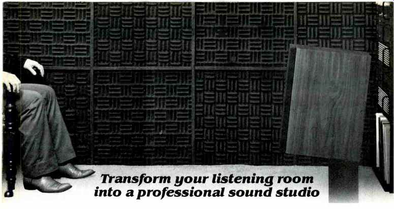 ![]() above: Bert Whyte's listening room, in which sound-absorbing Sonex was used in an LEDE installation. Most audiophiles, even those who are relatively inexperienced, learn early on that the catch-phrase "concert hall realism" is much abused and indiscriminately applied as a quality achieved by almost all hi-fi equipment. Or so the copywriters would have you believe. The audiophile is aware that what he ultimately is trying to achieve is the closest simulation of the live listening experience, whether the music be of the pop persuasion or from the vast resources of the classical repertoire. To this end, most audiophiles continually upgrade their systems to achieve ever higher levels of sonic sophistication. Some truly dedicated audiophiles spend large sums of money improving their systems. Unfortunately, the acquisition of expensive stereo equipment is no guarantee that the elusive sense of realism will be secured. I have heard some absolutely awful sound from some of the most expensive components. Almost invariably, the poor sound was not the fault of the equipment (although quality can vary widely even in expensive units) but in the manner in which the system was set up and, most especially, the acoustic environment in which it operated. For some strange reason, even experienced audiophiles with high quality stereo systems do not regard the acoustics of their listening rooms as a vital element in playback of music. Too many audiophiles look upon room acoustics as a most arcane subject, and their knowledge of it is at best rudimentary. They admit to a continuing feeling of frustration in their efforts to improve the simulation of the live listening experience. But there is a new way of acoustically treating listening rooms to achieve this purpose, far beyond what audio equipment can achieve on its own. My awareness of it began at an AES convention several years ago. I was roaming around the exhibits and ran across Alpha Audio of Richmond, Virginia, a company unknown to me. The genial president of the company, Nick Colleran, introduced me to the product they were displaying, an acoustical material known as Sonex. Sonex is an open-cell polyurethane foam supplied in 4 x 4 foot charcoal gray sheets, in 2-, 3-, and 4-inch thicknesses. It is configured in what is called the "indented" or female pattern and the "wedge shaped" or male pattern. (You have probably seen the wedges used in anechoic chambers, and the wedge pattern of Sonex is the same, although the wedges are on a much smaller scale.) Sonex is also supplied in 15 x 15 inch, 2-inch thick wedge-shaped "audio tiles" in silver, blue, brown, orange, and green. Because of the wedge pattern, one square foot of Sonex has 450% more surface area than a square foot of flat foam, and there is almost 100% absorption from 500 Hz to 1.5 kHz with the 4-inch thick Sonex. Nick Colleran told me about the use of Sonex in recording studio control rooms, in a rather radical configuration known as "live end-dead end" (LEDE) and promulgated by Don and Carolyn Davis of Synergistic Audio Concepts in California. Traditionally, most studio control rooms have their monitor speakers mounted near the front wall and ceiling boundary, surrounded by reflective walls. The mixing console is in the front third of the studio, where the mixer can face the monitors, usually no more than 10 feet in front of him. The rear side walls and the rear wall are ordinarily made as absorptive as possible. Hence, the "live" reflective end of the control room is in the front, and the "dead" absorptive end is in the rear. Although many aspects of studio control room acoustics are quite controversial, a number of engineers feel the Davis' LEDE approach, in which the "live" end is in the rear of the control room and the "dead" end is at the front of the room, has some unique advantages. Not the least of these special qualities is the very uniform absorption characteristics of Sonex. When the walls and ceiling of the front of the control room are covered with Sonex, both the absorption and the wedges work together. The wedges provide surfaces to interrupt and break up standing waves so that any energy that might be reflected is diffused. The absorption comes into play along with the diffusion to prevent close-order early reflections which, if the Sonex were not present, would reflect off the hard live wall and combine out of phase with the direct sounds of the monitor. This would produce nasty comb-filter effects, with subsequent frequency anomalies. With the elimination of the close-order early reflections, the mixer hears just the direct sound of the monitors and is not influenced by room acoustics. After discussing some of the professional studio applications of Sonex with Nick Colleran, I had a brainstorm. It occurred to me that there should be no technical reasons why Sonex would not work in an LEDE configuration in a home listening room. The different circumstances might require some modifications, but I didn't think they would be too difficult. Nick agreed at once and said that as soon as I measured my room and knew the requirements, I could start construction of the first residential LEDE listening room. First came some basic choices. With orange carpeting in my 12 1/2 x 24 foot listening room, I decided the standard charcoal Sonex would make an attractive color contrast. I selected the 3 inch thick Sonex because it is definitely superior to the 2-inch, especially in the lower frequencies, and is almost on a par with the 4-inch thickness, without its bulk and greater expense. As a rough rule of thumb, the front dead end of the room should be one-third of the room's total length-in my case, 8 feet. My ceiling height is also 8 feet, so it worked out very nicely to use four of the standard 4 x 4 foot sheets of Sonex on each side wall, and six of the same sheets on the back wall. The 6-inch space was pieced in by cutting strips from another Sonex sheet. For the ceiling, I chose the