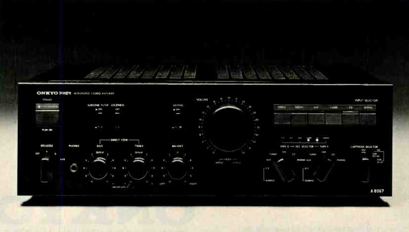 Onkyo's Real Phase Technology uses not one, but two power transformers to correct this problem. A large high capacity primary transformer together with a special In-Phase secondary transformer prevents this phase shift, providing increased power output into the loudspeaker load as the-music demands it. The result is clean, dramatic dynamics; musical peaks are reproduced with stunning clarity. Now, the dynamic range of the music can be fully realized. On the 'allowing pages, you'll find a complete explanation of the Real-Phase story. Shown in our new A-8067 Integra amplifier, with Real Phase Technology and our exclusive Dual Recording Selector. Artistry in Sound 200 Williams Drive, Ramsey, N 1.07446 The ONKYO "Real Phase" Amplifier Story Overview
