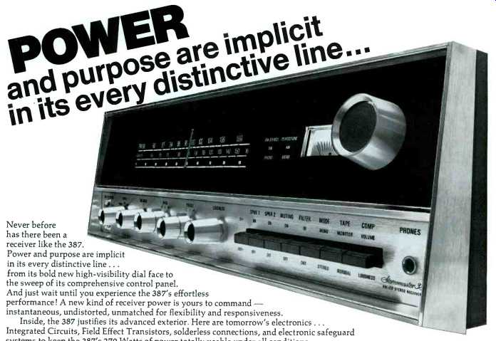 Dear Editor Dear Sir: I noted with interest your comments in the May issue equipment report on the AR receiver. I would like to point out that although the MPX measurements were "better than your test equipment" your measurements can be interpreted in a more meaningful way. The AR MPX design is characterized by the fact that residual cross talk is almost entirely residual distortion. ( Most good MPX detectors share this characteristic). Since you measured 0.5% distortion this implies that at that frequency separation should be 46 dB. We have actually seen units with 0.1% distortion and a separation of 60 dB, and have even approached this through the complete FM signal chain. Since amplifier performance is generally better than 0.25% harmonic distortion, a comparable standard of MX stereo quality is obviously needed for overall system performance. Our experience proves with care it can be obtained with added separation as an additional side benefit. ROBERT GRODINSKY Consulting Engineer Acoustic Research, Inc. In my experience, most MPX distortion is due to non-linearity of some kind but in a well-designed detector, crosstalk would then become a significant factor. A distortion of 0.1% is incredibly low and up to now, figures of this order have only been achieved by special ‘counter' circuits. I would certainly agree that stereo receiver distortion ought to be comparable with that attained by the amplifier. In fact, I would go further and say that broadcast transmission quality should be comparable too. Unfortunately, with few exceptions it is not. -Ed. ![]() -- “If left-front is out of phase with right ear, switch leads on one speaker. If right rear and left-rear are out of phase with left-front...." ============= Editor's Review Much of the space in this issue is devoted to Commercial Sound and the article by Don Davis on the uses of a computer calculator in system planning is of particular interest. Computers are going to be employed more and more in this field and I note that Bell Telephone Laboratories have been using one to measure room characteristics. The computer traces the paths of 300 rays which radiate from an omni-directional sound source in a simulated room. Each ray is tracked by the computer as it bounces off the ceiling, floor, and walls. Each time a ray hits an absorbing material its energy is reduced and the computer keeps an account of the energy remaining in each of the rays. So far, the studies have shown discrepancies with reverberation time calculations taker by conventional methods-and quite large ones at that. Readers who are interested can find further details in the February issue (Part 1) of the JASA ( The Journal of the Acoustical Society of America ) One day we may be able to use computers for the accurate evaluation of loudspeakers: with the present state-of-the-art there is no way to evolve a set of specifications which will guarantee that the sound produced by system A will sound identical to system B. In other words, it is possible to have two loudspeakers which will give identical results from conventional tests in terms of frequency, distortion, transient response with tone bursts, dispersion, and so on-but will still sound different. One reason is phase differences and another is the presence of small resonances that do not show up on the normal frequency runs. Yet another possibility is Doppler distortion-easy enough to measure with a spectrum analyzer but much more difficult to evaluate in terms of relative distortion. -What will the Hi-Fi setup of the future be like? This idle speculation was prompted by a demonstration of new prototype radio and TV models by Panasonic recently. Among the fascinating products was a tiny portable 1 1/2-inch screen TV with built-in AM/ FM radio, a battery operated portable Color TV set, a direct-drive phono turntable using an ‘electronic commutator' motor and an AM-FM radio with digital clock. This is a clock with a difference-you don't even have to look at it. Just press a switch and a voice announces the time... . In the mornings it can be programmed to give the time for two minutes, then switching on the radio. It can be set to play radio programs with time announcements every hour if so desired. How is it done? Not by tape as I had supposed-but with two magnetic discs, one for the hours and the other for minutes. When the call switch is pressed down, a motor drives the magnetic head to the correct position. Very ingenious... . And then there is the neural hearing concept. Two doctors in New York have evolved a system whereby sound is transmitted direct to the nervous system, bypassing the ears entirely. Small disks called ‘trans-dermal devices' are placed each side of the head and these are fed with a modulated r.f. signal. The head becomes in effect the dielectric element between two plates of a capacitor and the signal is detected by a complex process involving the cochlea and the nerves themselves. The cochlea normally converts a mechanical signal into an electrical one, but here its function is reversed. The r.f. carrier is usually in the 30to 100-kHz range and the actual power is quite low. I heard the system some months ago and although frequency range went above 20 kHz and down to 30 Hz, the quality of reproduction was not up to Hi-Fi standards. However, work is still going on and who knows what impact such ideas may have in the future? --Two High Fidelity Shows have been announced by the IHF, the first to take place at the Westbury Island Inn from September 15 to 22 and the second at the Newton Marriott Motor Inn ( near Boston) , from October 29 to November 1. The German High Fidelity Institute also announced a Hi-Fi Show and I must confess I found their description more picturesque. Says the information leaflet "Chaotic bedlam is completely erased by the use of sound-proof listening studios ... it is a rich and pure part of Hi-Fi '70 and not as it so often happens regrettably, a pseudo-cultural Sh