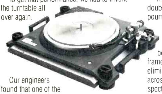 At first glance, its price may seem pretty steep. Until you know what the L-07D delivers: No other turntable can come as close to the theoretical limit of 100°/ß reproduction of recorded musical signals. To get that performance, we had to invent the turntable all over again. Our engineers found that one of the biggest obstacles to perfect sound was loss of energy caused by vibrational movement where the stylus meets the record groove. Up to now, these vibrations have resulted in mis-tracking, output distortion and audible resonance inherent in ordinary turntables. So we designed the L-07D with a closed, ultra-rigid motor-platter-tonearm loop to virtually eliminate unwanted vibration. To further cancel out resonance, we formed its low-mass tonearm from alternating layers of aluminum, carbon and boron. Then we took our quartz-PLL, speed-phase double servo control motor and added a 12-pound platter to give an extremely high moment of inertia for superior speed accuracy And mounted all the workings in a 68-pound base of resin concrete bonded to mahogany in a cast aluminum frame to virtually eliminate resonance across the entire audible spectrum.