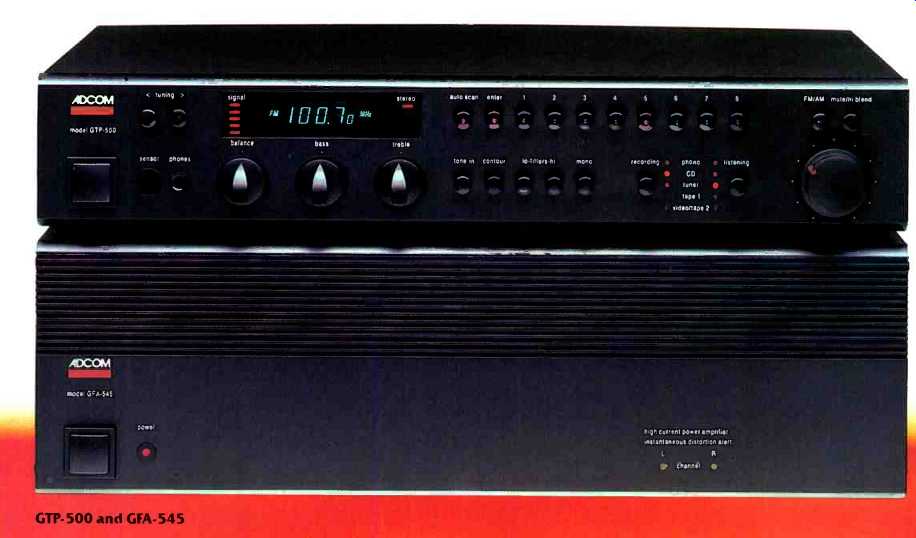 Now...from the people who brought you the GFA-555 high-current, high-power amplifier and the remarkable GFP-555 preamplifier...an affordable tuner for the real world of FM broadcast conditions. Unlike all other components, a tuner's performance depends to a great extent on where it happens to be installed-that is, with respect to the nearest FM stations. If you live in a close-in suburban area where a station's signal strength is reasonable and where there are few tall buildings, almost any tuner may do an adequate job. But in a major metropolitan area with tall buildings and many strong stations crowding the FM dial, your tuner mist contend with such problems as multipath distortion and front-end overload. And it should have the ability to separate stations contending for limited dial space. In rural areas where stations are distant and weak, and where signals sometimes arrive at an adjacent or same broadcast frequency from different directions, a tuner requires high sensitivity for adequate signal boost and good capture ratios and selectivity to keep stations from interfering with each other. High performance and affordability. The ability to cope well with conditions in both metropolitan and fringe areas requires sophisticated, expensive circuitry. Unless the ultimate selling price is no object, some compromise in design is usually necessary. The Adcom tuner is a clear exception to this rule. Through the use of recently developed component parts and innovative circuitry, Adcom has produced an excellent and eminently affordable tuner.