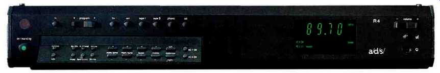 The primary objective: musicality. But tuning ease and accuracy under adverse reception conditions were only part of the design considerations. Even though the technical aspects of tuner design are certainly important, we consider optimum musical quality most important of all. We never forget that all high fidelity components are primarily a means to musical enjoyment. Our main design objective-to optimize sonic performance-is reflected only partially by the measured specifications. For example, the frequency-generating circuitry associated with digital synthesis tuning tends to raise the background noise and distortion level of a tuner. To avoid this problem, we adopted computer shielding techniques--including ribbon wire--to prevent the synthesized digital pulses from leaking into the high-gain front end of the tuner. Many operating and convenience features: In our concern for providing you with the best possible stereo reception, we haven't lost sight of ease and convenience. You can program up to sixteen stations into memory--eight each, FM and AM--for instant retrieval at the touch of a button. And the large, clear fluorescent frequency display can be read from across the room. (A built-in lithium battery preserves station memory during lengthy power outages.) A five-stage LED signal-strength display enables you to orient your antenna for optimum reception. If the signal from a favorite station is just too weak to be entirely noise-free, the switchable "high blend" circuit reduces high frequency noise to preserve listenability. And under extreme conditions where noise-free stereo signals can't be received at all, you have a stereo/mono switch for a practical compromise. Finally, as you can see at a glance, we've also taken care to present all this simply and attractively. And like most of our components, you have a choice of either all black, or a white or silver front panel. Please write for literature and reviews of other fine Adcom products. We will reply promptly. SPECIFICATIONS: FM Section: IHF sensitivity, mono: 9.5 dBf (1 6 uV) Signal strength for 50 dB quieting: Mono: 12.5 dBf Stereo: 36.5 dBf Capture ratio: 1.5 dB AM suppression: 70 dB Alternate channel selectivity: 80dB Separation at 1kHz: 52 dB Total harmonic distortion-stereo: 1 kHz: 0.05% 6 kHz: 0.09% Intermodulation distortion (SMPTE 4:1 ratio): 0.08% up to 100% modulation Maximum signal-to-noise ratio: Mono: 85 dB Stereo: 75 dB Frequency response: 30 Hz-15 kHz Antenna impedance: 75 or 300 ohms Line voltage: 120V/60Hz (available in 220V/50Hz on special order) Dimensions: (432mm x 83mmx 330mm D) Weight: 14 lbs. (6.4 kg) Optional accessory: Model RM-3 rack mount adapters. Available on special order with white front panel with white buttons, or silver panel with black buttons.