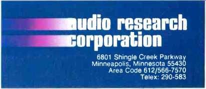 Operational Features Front-panel replaceable line and screen voltage fuses, with LED indicators. Two integral, low-noise fans for cooler operation, longer tube life. Front-panel switch allows "Hi" and "Lo" speeds. "Standby" switch for lower power consumption and less heat during warm-up periods or telephone interruptions. Automatic muting circuit provides silent shutdown upon power shut-off or interruption. No "thump" from speakers. Gold-plated input connectors connect "ground" before "hot". 1, 2, 4, and 8-ohm output taps. Front and rear handles for easier handling. M300: Preliminary Specifications (Power line stabilized at 120V.) POWER OUTPUT: 300 watts minimum continuous at 8 ohms from 16Hz to 25kHz with less than 0.5% total harmonic distortion (typically below .005% at 1 watt). Approximate actual power available at "clipping": 330W watts (1kHz). (Note that actual power output is dependent upon both line voltage and "condition," ie: if power line has high distortion, maximum power will be affected adversely, although from a listening standpoint this is not very critical.) POWER BANDWIDTH: (-3dB Points) 10Hz to 60kHz. INPUT SENSITIVITY: 1.5V RMS for rated output. INPUT IMPEDANCE: 60K ohms, nominal. OUTPUT REGULATION: Approximately 0.3dB, 8 ohm load to open circuit (Damping factor approximately 30) NEGATIVE FEEDBACK: 20dB. SLEW RATE: 25 volts/microsecond. RISE TIME: 3 microseconds. HUM & NOISE: Less than 2mV RMS 90dB below rated output (broad bandwidth unweighted, inputs shorted). POWER SUPPLY ENERGY STORAGE: Approximately 350 joules. POWER REQUIREMENTS: 105-125VAC 60Hz (210-250VAC 50Hz) 900 watts at rated output. 450 watts at "idle" 130 watts at "standby". DIMENSIONS: 19" (48 cm) W (standard rack panel) x 10.5 " (27 cm) H x 16" (41 cm) D (front panel back). Handles extend 1 5/8" (4.1 cm) forward of the front panel. Output connectors extend 1" behind rear panel. WEIGHT: 110 lbs. (50 kg) Net; 126 lbs. (57 kg) Shipping. TUBES REQUIRED: 8 x 6550 Power Output (Matched pairs will yield marginally better performance.). --------- SP9 STEREO PREAMPLIFIER The SP9 Hybrid Stereo Preamplifier represents a further evolution of the innovative electronic design first embodied in the widely acclaimed Audio Research SP11 Stereo Preamplifier. The SP9 is not a "stripped-down" version of the SP11, but rather represents an adaptation of some of the SP11's patented hybrid technology to a simpler, more economical single-chassis format. Using just two 6DJ8 vacuum tubes (one in the phono section and one in the high-level stage) in intermediary gain stages, the SP9 expresses the musicality and natural "rightness' vacuum-tube preamplifiers have been noted for, yet it does so with the quickness and dynamic vigor of the best solid-state designs. STEREO PREAMPLIFIER Because its two vacuum tubes are used so conservatively, the SP9 will undoubtedly prove to be one of the most reliable and low maintenance Audio Research preamps ever up to 10,000 hours of service life are possible before replacement of these tubes might be necessary. And, replacement tubes are not required to be select, low-noise (and expensive) types. Audio Research brand vacuum tubes obtained from your authorized dealer will provide the best performance and reliability. Although the SP9 contains an on-board power supply (as opposed to the SP11's isolated supply), it is a highly advanced, tightly regulated design employing a shielded toroidal power transformer to minimize any potential problems of mechanical noise or hum. Location of this transformer in relation to special low-hum input circuitry has been optimized within the SP9 chassis layout to virtually eliminate transformer-related noise. (Note that while outboard power supplies have become a popular design trend among high-end audio manufacturers, simply isolating the power supply from the main chassis has little benefit if the basic design of the supply itself is second-rate. In such cases, outboard isolation may be little more than a cosmetic cure for more serious deficiencies.) While the SP9 is designed to provide superb playback from phono records, its high-level circuits have also been optimized for other popular input sources, including compact discs. In this respect, the SP9 is virtually overload proof, insuring maximum enjoyment of today's most dynamic program material. And, with two tape monitor loops, the SP9 offers the tape dubbing flexibility so many listeners want but seldom find in an audiophile-grade preamplifier. Of course, all controls and switches used in the SP9 have been carefully specified and selected to insure minimal sonic degradation as have the other active and passive components used in the construction of the SP9. While the SP9 is more affordable than some other Audio Research preamplifiers, its more modest price was not achieved at the sacrifice of component quality. Careful, elegant design, structural simplicity and efficient manufacturing techniques have all contributed to a standard of physical integrity and musical accuracy never before achieved in this price class. To audition the SP9 Stereo Preamplifier, visit your authorized Audio Research dealer. Black front panel available at additional cost. Call or write for literature on the complete line of Audio Research products. Operational Features Automatic muting circuit for warmup, powerline voltage drop or interruption; plus manual (switchable) muting of main preamplifier outputs. Full tape functions: two inputs, two outputs, plus two-position tape monitor switching. Gold-plated input/output jacks selected for sonic purity. These connect “ground" before "hot," disconnect "hot" before "ground" for protection of other components. Shielded, toroidal power transformer for minimal mechanical noise and "hum." Phono section impedance internally adjustable for precise matching to moving-coil or moving-magnet phono cartridges. Tube complement: two 6DJ8 vacuum tubes (one in phono stage, one in line stage). Low noise (78dB 