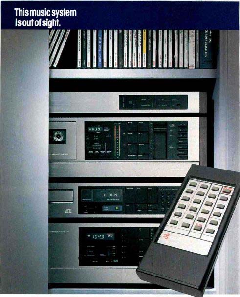How to carry a 100-Watt MOS FET Receiver, a Dolby HX Pro Cassette Deck, and an anti-resonant Compact Disc Player around the house. Kyocera puts one high-end audio system in many rooms. The finer your audio system, the more you should enjoy it. So why confine your listening pleasure to just one room? Imagine having beautiful music throughout your house. In the bedroom as you get dressed. In the family room as you relax. In the Riving room as you entertain. Now imagine all this music coming from a single audio system of consummate fidelity. Not long ago, this kind of flexibility was just a dream. It would have taken several separate hi-fi systems to accomplish this feat-with tremendous expense and duplication of components. But the tiny remote sensor of Kyocera's new Full System Remote Control network has changed all that For the cost of separate systems of marginal quality, you can assemble a single Kyocera system of audiophile quality--and enjoy that system in several rooms. If you want to make your audio system the centerpiece of your living room, you'll be happy to know that Kyocera components are as beautiful as any on the market. But if you'd rather tuck your Kyocera components discreetly away, you can still enjoy them-and operate them via wireless remote control, CD PLAYERS: Kyocera presents the features they'll be copying next. ![]() ![]()