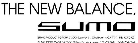In May of 1983, Kyocera introduced a CD player with true 16-bit digital filters. Today, the competition's calling this circuit "the latest thing.' Years ago we had four-times oversampling. This year every high-end player worth mentioning has a similar design. In September, 1984 Kyocera raised some eyebrows with the world's first Fine Ceramics anti-resonant CD chassis. Now the stores are full of flimsy imitations. How did all these innovations happen to come from Kyocera, and not some household name? Perhaps because Kyocera's knowledge of digital circuitry comes from years of building computers for some of the best-known names in electronics. Perhaps because Kyocera is a world leader in Fine Ceramics, the technology used to house circuitry in aerospace, computers and other advanced systems. Or perhaps because some top-rated CD players from other brands were actually built by Kyocera. Now Kyocera has four world-beating Compact Disc Players. Each boasts technology so advanced, it's a preview of what the competition will be selling in 1989. After all, history does repeat itself. SOLVING THE PROBLEM OF RESONANCE Because the CD's track of pits is microscopically narrow, vibration can cause mistracking and its consequent data errors. In fact, controlled tests performed for Kyocera by an independent research laboratory confirm that a non-resonant Fine Ceramics chassis incurred significantly fewer data errors than a conventional chassis of similar design. That's why three of these new CD players feature Fine Ceramics spacers strategically located in the chassis. They isolate the laser transport and printed circuit boards from external vibration. In addition, dual zirconia-ceramic guide shafts, developed by the Kyocera Gamou Works, assure smoother travel of the laser transport for superior tracking stability. THE KYOCERA DA-310CX. Compatible with the Kyocera Full System Remote Control network Zirconia-ceramic laser guide shafts for smoother laser travel, longer life 16-bit double oversampling digital filters for maximum noise suppression 3rd-order bessel-derived analog filters for minimum phase shift Rigid metal chassis construction Floating laser subchassis Three beam laser tracking for superior tracking stability Gold-plated output jacks Skip forward and Back Two-way repeat (disc and track) 16-selection programmability "Dedicated" wireless remote control supplied Multi-function fluorescent display Headphone output with volume control Wood side panels. THE KYOCERA DA-410CX. ALL THE FEATURES OF THE DA-310CX, PLUS: Anti-resonant construction with Fine Ceramics chassis spacers for fewer data errors, lower distortion DC analog amplifier with left/right phase compensation for improved stereo imaging Direct random track selection with 10-key pad Timer playback capability. THE KYOCERA DA-510CX. ALL THE FEATURES OF THE DA-410CX, PLUS: Digital filtering with four-times oversampling at 176.4 kHz to minimize aliasing noise Dual digital-to-analog converters eliminate interchannel phase delay Optically coupled digital signal routing to eliminate internal interference Direct digital output for connection to other digital components Digital Subcode Output port for disc information output Three way repeat: disc, track and phrase Direct random track selection with 20-key pad Intro Scan plays a ten-second sample of each track on the disc Background Music function plays songs on the disc in random sequence. THE KYOCERA DA-710CX. ALL THE FEATURES OF THE DA-510CX, PLUS: Separate digital and analog power supplies minimize interference Dual monaural audio circuit maintains high separation 100% discrete components in the analog output stage for minimum distortion Low-noise LC-OFC wiring 99-track direct access. --------Fine Ceramics chassis spacers dramatically reduce internal resonance. CASSETTE DECKS: Two heads can be better than three. For years, cassette deck manufacturers have touted the three-head feature. Again and again, we are told that three heads are the only way to achieve frequency response to 20 kHz. So many brands have devoted so much attention to this argument that it seems heretical to suggest there's a better way. In fact, doing three heads properly is an extremely expensive proposition. And doing it poorly is a sure way to sacrifice performance. Proponents of three-head design like to gloss over the fact that any three-head deck with pretentions to high performance must come to grips with the problem of azimuth error. Azimuth error occurs when the playback head gap does not line up precisely with the signals laid down by the record head gap. This kind of error can never occur on two-head decks, where the record and playback gaps are exactly the same. Less than one degree of azimuth error can cause significant loss of response above 15 kHz. And that's ironic, because extended highs were supposed to be the strength of the three-head design in the first place. Some manufacturers try to reduce azimuth error by placing the record and playback heads close together-often squeezing them through the cassette's central window. Others try to conquer azimuth error through elaborate mechanics and electronics. To be fair, the more elaborate systems do work, but only at incredible cost to the consumer. And the simpler systems? If the response falls short of 20 kHz on Type II tape, then the azimuth error correction is not completely successful. Kyocera has a fresh approach. We maintain that a properly designed two-head deck can give you exemplary frequency response. And our decks prove it. Instead of spending money on elaborate azimuth error correction, we consciously spent the money on reducing wow & flutter. A TRANSPORT OF DELIGHT. The most audible shortcoming of today's decks is wow & flutter. That's why Kyocera concentrated on improving the transport. On the D-811, we used two capstans, isolated by a closed-loop belt, for minimum modulation noise. We gave the takeup capstan direct drive. We supplied a separate hig