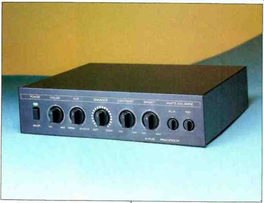 ![]() by BERT WHYTE Super-Color Black Box In describing my Dolby Surround Sound home-video theater installation in the February 1988 issue, I pointed out the system's three interrelated elements: The acoustically treated dedicated room, the video equipment, and the audio setup. With movies on high-quality videocassettes and laser videodiscs, the audio/visual experience has been quite spectacular. Many professional audio people have seen and heard this system and have been most impressed by it. Even the most die-hard audiophiles, who generally sniff disdainfully at anything video, commented favorably. Now that the audio/video marriage is on a firm footing, many new products have been developed. Some specifically enhance the visual aspects of the home theater, while others upgrade the audio quality. With the recent acquisition of some new hardware and software, my system's performance has considerably improved. David Fletcher-who heads Sumiko, a company well known for high-end phono cartridges and tonearms-is a physicist who has always had a passionate interest in video technology. Fletcher has developed an outboard "black box," 8 1/2 in. W x 2 in. H x 7 1/4 in. D, which he calls his S-RGB processor. The "S" refers to the new Super VHS videocassette recorders. These VCRs have "S" input and output connectors which provide separate "Y" (luminance) and "C" (chrominance) signals. While Super VHS VCRs are capable of 420 lines of resolution, achieving this performance requires that certain conditions be met. First off, one needs a program source with 420-line resolution, ideally a prerecorded Super VHS tape. Then the "S" outputs (Y and C) of the VCR are connected to the "S" inputs on a TV monitor or projection TV. Many new monitors and projection TVs are now equipped with "S" connectors-but they are absent from all older TV units. This is why Fletcher is offering the S-RGB processor. The "RGB" refers to red, green, blue-the three primary colors-which; combined in the proper proportions, give the full color picture. Many current TV monitors and projection TVs are equipped with analog RGB inputs. Normally, they are used to connect computers and video games. The "S" output of a Super VHS VCR is connected to the Sumiko processor, where the Y and C signals are converted to RGB and then fed to the RGB inputs on the TV. The Sumiko processor derives its RGB signals from the Y and C signals of the VCR in a proprietary process too complex to detail here, but it includes the use of temperature-compensated crystal oscillators and wide-band (6.875-MHz), complementary-symmetry, d.c.-coupled output amplifiers. These amps use four transistors for each RGB output to achieve a much more powerful and linear drive, as compared to the usual monitor or projection TV in which the equivalent circuits use two transistors per RGB output in a nonsymmetrical configuration. With the Sumiko processor connected to the RGB inputs of monitors or projection TVs, their hue, color, contrast, and brightness controls are disabled. These controls are provided on the front panel of the Sumiko unit; with an "S" connector cable of sufficient length, they can be remotely operated. There is also an edge-enhancement control, and two special red and blue controls adjust white balance. These white-balance controls offer one of the major benefits of the Sumiko processor. As Fletcher explains, "For colors to reproduce accurately, the color temperature or white balance of the picture must match that of the video camera. Cameras are set to match a color temperature of 6500° K. In other words, television 'white' is very slightly bluish with proper white balance. As a monitor or projector ages, the light outputs of the three guns in a three-color tube (or of the three separate tubes in a projector) change relative to each other. This changes the white balance and, consequently, the color fidelity of the picture. Normally when this happens, a service technician must be called in to adjust the internal gun or tube-drive controls to restore proper white balance. The S-RGB obviates this need. The white balance can be restored with the red and blue controls on the front panel. "On the back of the S-RGB is a switch labeled 'Notch.' When non-Super VHS tapes are played, the extra resolution may allow some annoying color artifacts; this switch will allow one to reduce these artifacts." What does Sumiko's magic box do? It certainly provides distinct benefits in terms of color temperature (white balance) and resolution with monitor TVs, but it really shines in the improvements it can bring to projection TVs. A few points to consider: Thus far in the brief history of Super VHS, virtually no prerecorded S-VHS videocassettes of feature films are available (although some are supposed to be released in the near future). This may have deterred some people from buying Super VHS recorders. However, if one owns a TV set with RGB inputs, consider this: Even if you have a really good antenna in a good signal area or you have a good cable connection, about the best resolution you can normally expect is 240 lines because of the composite signal (and other factors). And this is in spite of the fact that the horizontal resolution of the NTSC broadcast luminance channel is more than 330 lines! In other words, with a Super VHS VCR, the Sumiko processor, and RGB inputs on the TV set, even broadcast TV has improved resolution. (True, one usually must use the VCR's TV tuner in order to operate the S-RGB.) Because of the wide bandwidth and the more powerful and more linear drive of the Sumiko processor, as compared to similar circuitry used in most monitor and projection TVs, a whopping 30% more picture brightness and contrast is available. For most projection TVs, which usually are lacking in picture brightness and contrast, this is a real boon. Even with the essentially good picture of the Infinity projection TV I use, the difference is startling. Many low-light scenes have f
