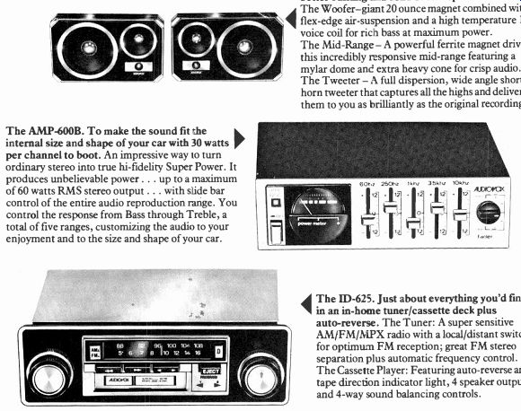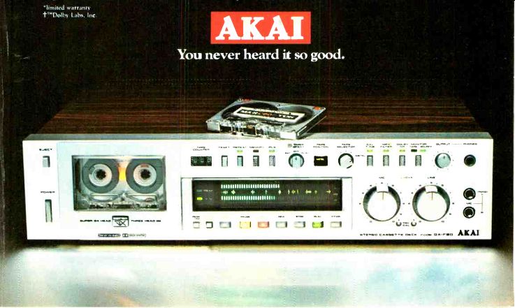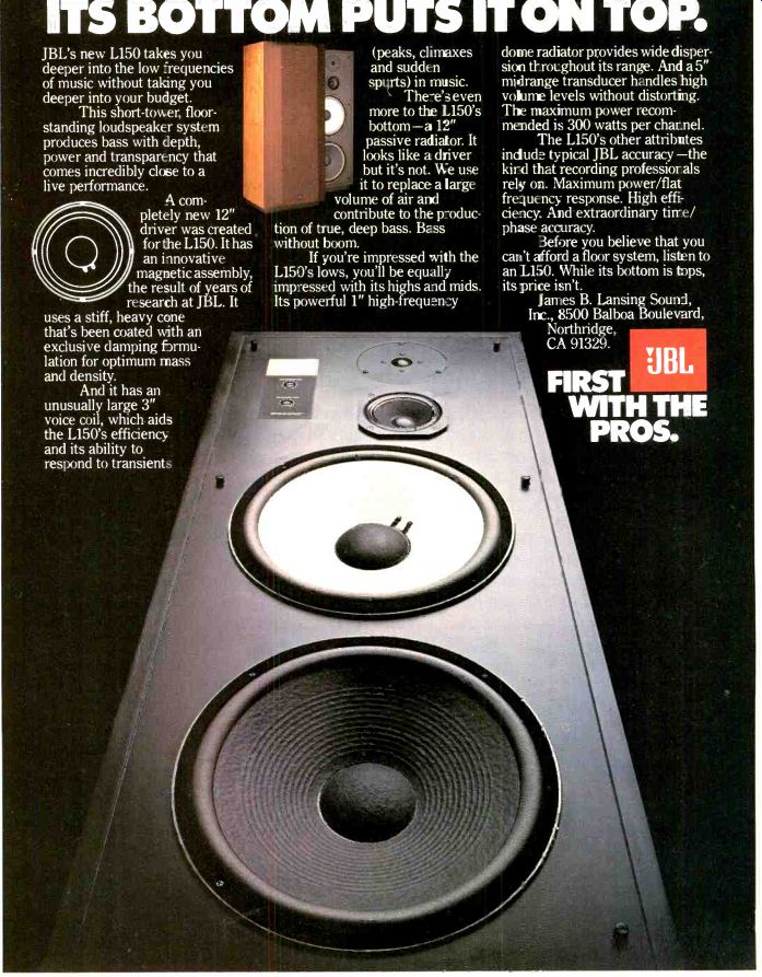 MEMOREX HIGH BIAS TEST NO. 5. WHICH HIGH BIAS TAPE STANDS UP TO A GENR AD REAL-TIME ANALYZER? ![]() The GenRad 1995 Real-Time Analyzer is among today's state-of-the-art devices for accurately measuring and displaying audio signals. That's why we used it to show that MEMOREX HIGH BIAS is today's state-of the-art high bias cassette tape. When tested at standard recording levels against other high bias tapes, none had a flatter frequency response than MEMOREX HIGH BIAS. And, the signal/noise ratio of MEMOREX HIGH BIAS proved to be unsurpassed at the critical high end. Proof you can't buy a high bias cassette that gives you truer reproduction. And isn't that what you buy a high bias tape for? Is it live, or is it MEMOREX The GenRad 1995 Integrating Real-Time Analyzer measured signals from a Nakamichi 582 cassette deck. Input signal source was "pink noise" at 0dB (200 nanowebers-standard record level). If you'd like a copy of the test results, please send a self-addressed, stamped business-size envelope to the address below. Ask for the GenRad Test. For unbeatable performance in a normal bias tape, look for Memorex with MRX3 Oxide, in the black package. The Evolution of Excellence ![]() The GenRad 1995 Real-Time Analyzer is among today's state-of-the-art devices In 1976 Pickering launched a new modern high fidelity era by introducing the first of a new generation of phono cartridges, the Pickering XSV/3000, acclaimed atop performer by critics and reviewers worldwide. Now Pickering takes the Stereohedron Series one step be yond excellence with the new XEV/4000. A lightweight, high energy, samarium cobalt magnet and shaped-for-sound Stereohedron Stylus tip are major innovations that eclipse previous performance standards in four crucial areas. Improved tracking ability. Expanded frequency response range. Wider channel separation. And feather-light treatment of the record groove. XSW 4000 ... the next generation of sound. For further information write to: Pickering & Co. Inc., Sunnyside Blvd., Plainview, N.Y. 11803 PICKERING: "for those who can hear the difference" Now there's a two-way speaker with remarkable midrange without a midrange. The Infinity RSa It could only come from Infinity. ![]() A two-way speaker with midrange (as well as tweeter) controls--yet there's no midrange driver! A new and unique crossover in the RSa allows adjustment of the mid range. This unprecedented control actually permits you to vary depth as well as projection of the musical image; accommodating the program material, your room acoustics and your personal taste. This flexibility, clarity and detail of midrange is unachieved by even much more expensive three-ways. Why is this important? Because the fundamental tones of most instruments lie in the midrange: 350 to 5000 Hz. When this musical information is poorly reproduced, you're not hearing the whole truth. Listen to a traditional speaker system; characteristically the overall sound is thin, veiled and lifeless. You hear notes, not musicians. Then listen to the Infinity RSa. It breathes life. It has warmth. Infinity scientists and musicians were determined to create a modestly-priced speaker in the extravagant Reference Standard family tradition. So we gave it some of the family jewels. We gave it EMIT? acclaimed by audio critics world-wide for its delicacy, transparency and smoothness. We gave it polypropylene, our new speaker cone material with acoustic properties making it superior to paper in every respect; it is ideally light, stiff, stable and acoustically inert. The meticulous amalgamation of these elements has produced the incomparable RSa. The least is for your eyes as well. RSa is crafted with the finest oak veneers available. The tab: about $200. To learn more about the peculiar Infinity alloy of music and science, please ask any Infinity dealer for our new brochure, "The Creative Technology of Infinity Speakers:' It will tell you part of the story. Then listen to the RSa. It will tell you the rest. Infinity----We get you back to what it's all about. Music. A toll-free call to (800) 423-5244---or from California, (800) 382-3372---will get you the nearest Infinity dealer's name and address. 1979, Infinity Systems. Inc.. 7930 Deering Ave. Canoga Park. CA 91304, (213) 883-4800. Onkyo ![]() ![]() An incredible sound experience awaits you. An experience that technology alone finds hard to explain. You'll hear music of such stunning purity and sensual rich ness, that you'll wonder how any audio system could make that much of a difference. The Onkyo CP-1030F That's the secret of Onkyo. The unique ability to take you several steps beyond pure technology ... to a world of more exciting sound. And we provide it in all our components ... beginning with turntables. The Onkyo CP-1030F Fully-Automatic Turntable is an outstanding example. It takes far greater advantage of today's most sensitive high-compliance cartridges . . . providing more precise record groove tracking, while silencing out vibrations from record warp, the turntable motors, even sound The Onkyo TA-2080 waves produced by your speakers. The CP-1030F is rich with important new concepts . .. a low mass, straight line carbon-fiber tonearm ... infrared sensors for smoother automatic tonearm control ... Quartz-locked direct-drive accuracy . . . and a new triple-insulated suspension. All combine to produce purer sound. And the CP-1030F is just one of five advanced new turntables from Onkyo. In stereo cassette tape decks too, Onkyo achieves more perfect sound. The Onkyo TA-2080, for example, provides a computerized control system called "Accu-Bias" ... which automatically assures that every recording you make is superior, including new metal tapes. Every tape has a different bias setting requirement . .. even two tapes of the same formulation from the same manufacturer. "Accu Bias" automatically senses each tape's unique bias needs, then makes the precise system adjustments to provide it. Brighter, cleaner h