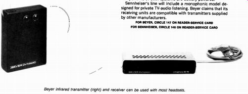 News and Views: Betamax's home videotape ... New noise-reduction systems ... The lost (headphone) cord. Breaking the Umbilical Cord Electro-acoustically ![]() There you are ensconced in your stereo headphones as the music incites an irrepressible urge: You just have to get up and dance. A dozen pirouettes later you find-amazingly- that you haven't become tangled in the wire and fallen on your face. That's because you're wearing a new type of headphone, one of several successfully demonstrated in Germany last summer, that does away with cables and transmits audio to the listener via modulated infrared "light." Models from Beyer are newly available in the U.S.; units by Sennheiser, still in prototype, are to be introduced in the near future. The transmitter portion of each system accepts audio from whatever source the user chooses and modulates an array of infrared transducers resembling a battery of miniature searchlights. The radiation it projects into the room is, of course, invisible. And although infrared is popularly defined as "heat rays," one can barely feel the warmth even an inch or so from the transducers. Sennheiser cordless headset is self-contained. The carrier is multiplexed to accommodate the two channels of a stereo source (no, the channels don't re verse when you turn around), and it seems to diffuse through a room well enough to allow one to move around freely without fear of finding dead spots. A Sennheiser spokesman indicates that the useful range of its system (outdoors) has been found to extend up to several city blocks. (But neighbors should agree on whose transmitter will be on.) The Beyer system allows transmitters to be operated in tandem, so that good coverage can be achieved even in large film studios. The infrared, with a wavelength of 930 nanometers or thereabout, is gated on and off at the carrier-frequency rate (95 kHz in the Sennheiser and Beyer systems), with the carrier itself frequency modulated. Both of these manufacturers offer headsets with integral receiving and de modulating circuitry based on infrared-sensitive diodes. Sennheiser's receiving modules are compatible with its HD-414 and HD-424 headsets. Beyer also offers a non-integral receiver-demodulator (carried by the listener) into which an existing headset can be plugged. The portable components of both systems are battery-powered. Sennheiser's line will include a monophonic model de signed for private TV-audio listening. Beyer claims that its receiving units are compatible with transmitters supplied by other manufacturers. Beyer infrared transmitter (right) and receiver can be used with most headsets. ![]() Coming Events High Fidelity Music Show, Inc., the organization headed by Teresa and Robert Rogers that sponsored the show in Philadelphia last November, has events planned for two more cities in the immediate future. Both are booked into downtown sites-a return from the suburban locations with which the industry has experimented over the last decade. Detroit will have its show at Cobo Hall from Friday the 13th (lotsa luck!) through Sunday the 15th of February. The same location was used for the Rogerses' 1974 show, which they called a "smash hit." San Diego gets its turn in March, at the Convention and Arts Center. This-the first "professional hi-fi show" in San Diego, according to the sponsors-opens on Friday, March 12, and runs through Sunday, March 14. So Who's Tim? TIM (transient intermodulation distortion) and his friends, phase distortion and difference-frequency distortion, may soon crowd their way into your audio equipment spec sheet and make it yet a little more complicated. All of this is to a good purpose, however: it should make for better sound. B&K (Bruel & Kjaer) Instruments, Inc., of Denmark recently announced new systems designed to measure Equi these effects, which some engineers believe to be more revealing than conventional measurements in terms of correlation to audible sound quality. Look for these elusive effects to become areas of research and development and- finally-competition in the marketplace, probably starting with high end equipment. DBX Bids for the Inside Spot The field of built-in noise-reduction systems for consumer tape machines. heretofore dominated by the Dolby B circuit, will be expanded. David Blackmer, president of DBX. Inc., has announced a license agreement whereby DBX noise reduction will be offered in Teac's line of recorders- and in all three formats, open-reel. cassette, and cartridge.
