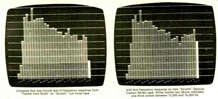 TRANSCRIPTORS (Ireland) Limited is importing the "Vestigal" Tone Arm, a new design employing a vertical pivot assembly located very close to the phono cartridge to reduce effective tone arm mass in the vertical direction as much as possible. Balancing the arm and applying stylus force is accomplished through a string-and-weight system, with the string running the length of the arm from the hinged cartridge shell to the tone-arm upright. There it is attached to a pivoted drum that keeps a constant tension on the string. The amount of tension is determined by an adjustable counterweight that moves along a threaded shaft attached to the drum's circumference. Other adjustments provided for include means to bring the horizontal rotation of the arm parallel to the disc surface, height adjustment, stylus overhang, anti-skating compensation, and a stop to keep the arm from swinging into the la bel area of the disc. The low effective mass of the arm is claimed to result in negligible susceptibility to acoustic feed back or record-warp effects, and it is further claimed that tracking forces as low as 1/10 of a gram may be attained. The arm is of all-metal construction, and uses jewel-bearing pivots throughout. Price: approximately $100. ADC Model WDDS-12 Speaker System AUDIO DYNAMICS CORP. has a new speaker system, the Pritchard WDDS 12 (the initials stand for "wide dispersion/discrete source"). The system is a multidirectional radiator, with the woofer (a 12-inch air-suspension type) facing directly forward and the tweeters, of which there are four, angled slightly to either side on subsections of the enclosure's three-part front panel. Two types of tweeters are used, both having Mylar dome diaphragms, but with diameters of 11/2 and 3/4 inches. One of each type is mounted on either side of the enclosure. Frequency response is 30 to 25,000 Hz ±2 dB, and varies no more than 3 dB from on-axis response over a lateral angle of 120 degrees. Crossover between the woofer and tweeters takes place gradually over the range of 600 to 5,000 Hz. The nominal impedance of the system is 6 ohms. A four-position contour switch offers a choice of flat response, high or mid frequencies reduced by approximately 2 1/2 dB, or both reduced by that amount. The Pritchard system has a sealed enclosure of oiled walnut with a foam grille. Dimensions: 26 x 14 1/2 x 12 inches. Price: $350. An optional pedestal base (shown) finished in matte-black aluminum is $25. Dokorder MK-50 Dolby Cassette Deck A NEW stereo cassette deck has been introduced by Dokorder. The Model M K-50 has Dolby B-Type noise reduction, a tape selector with positions for "normal" and chromium dioxide, and a "Cue & Review" function that permits direct switching from play to fast for ward and rewind (to assist in locating specific points on the tape). Slider-type adjustments are used for setting recording and playback levels; these are separate for each channel. Push-key trans port controls are provided, including pause and eject functions. The micro phone inputs and a stereo headphone jack are recessed into the trim strip on the deck's front edge. Frequency response is given as 30 to 15,000 Hz with standard tape and 30 to 18,000 Hz with chromium dioxide. Signal-to-noise ratio is better than 60 dB with Dolby, 50 dB without; wow and flutter are under 0.1 percent. A C-60 cassette can be fast wound in less than 100 seconds. Dimensions of the deck are 16 x 11 3/4 x 4 inches. Price: $249.95. A wood base is included. Heathkit AD-1013 Four-Channel Audio Scope HEATH'S new four-channel audio scope consists of a 3-inch cathode-ray oscilloscope with inputs for up to four audio channels and for an FM multipath display, plus a self-contained audio-frequency generator to provide test and calibration signals. The multifunction instrument is housed in a cabinet that matches the size and general styling of the Heath AR-1500 receiver. The scope's display modes, which are chosen by an eight-position selector switch, include signal-strength vectors for each of the four channels (which can be selected separately) and the familiar "scrambled-egg" pattern for stereo. For displaying all four channels simultaneously, an internal circuit assigns each of the inputs its own quadrant on the scope screen. The FM multipath display, which is also useful for determining signal strength and channel center, receives its input from tuners and receivers that have the appropriate oscilloscope outputs. (An adaptor kit that adds these jacks to the Heath AR-15 receiver or AJ-15 tuner is available from Heath for $24.95.) The AD-1013 will also function as a normal a.c. scope (with triggered sweep) for inputs connected to the five-way binding posts on the front panel. Sweep range is selected by a four-position decade switch and an associated continuously variable control. The audio-generator section is continuously variable and roughly calibrated at eight important frequencies from 20 to 20,000 Hz. output is held constant within 0.25 dB over the range covered, and the level control affects the signal available from the front- and rear-panel output jacks. The AD-1013 also has trace-position and gain controls (vertical and horizontal) and focus and intensity adjustments. The sensitivity of the oscilloscope is 25 milli volts (peak to peak) percentimeter (1 volt percentimeter in the four-channel display mode). Input impedance is 100,000 ohms, and the frequency response is 5 Hz to 200 kHz ±3 dB. Overall dimensions of the AD-1013 are 18 1 1/2 x 5 1/8 x 13 1/2 inches. It is available only in kit form for $199.95, with a walnut cabinet costing $24.95 additional. ![]() BSR Model FEW-2 Frequency Equalizer THE Metrotec division of BSR is offering a new addition to its line of multi band tone controls. The Model FEW-2 acts in five two-octave bands with center frequencies of 60, 240, 1,000, 3,500, and 10,000 Hz, with a continuously vari able amplitude adjustment range of ±12 dB at each setting. It is a stereo dev