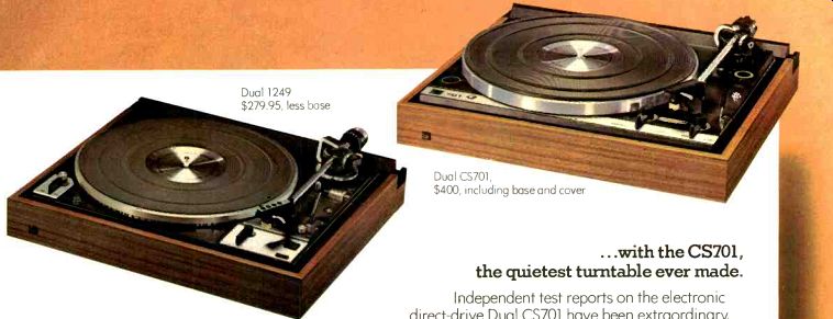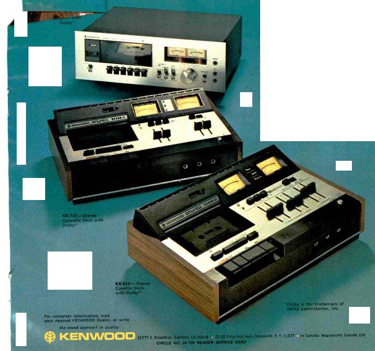 ![]() A tribute to appreciation. Music appreciation Art appreciation. Appreciation for excellence in performance. A fulfillment that comes from the experience, not from the parameters by which it was created. The Contrara group of loudspeakers is a tribute to that appreciation. We should not deliberate how Amilio Contrara has sculpted the walnut, blended it with cloth and merged it with technology to bring visual satisfaction. Nor, how he has balanced the electronics wits physics to provide audible gratification. Ours is only to enjoy. To appreciate. To savor. Something only our ears and eyes can savor for themselves. If you enjoy your music and quality craftsmanship, you'll appreciate the Contrara Group; it's a tribute to your sensitivity. Write us for additional information. We'll send you a booklet on appreciation and a list of locations where you can enjoy Confrere. JENNINGS RESEARCH INC, 64 N. Fair Oaks Ave., Pasadena, Calif. 91 103 Canadian Distributors--THE AUDIO GROUP INC. Ontario For the name of the nearest dealer. call toil-free [800]-447-4700 In Illinois, [800]-322-4400. SAE![]() Sound reasons 1 thru 5 why an SAE gives you what you pay for. You are an audio connoisseur. You know exactly what you are looking for in audio components. The right features. The right functions. The right power. But you can't find one at the right price. And you won't. What you're looking for costs plenty to produce. Some build additional price right into their units. We build additional unit into our price. Here are some reasons why an SAE gives you what you pay for. 5 YEAR FREE SERVICE CONTRACT SAE-- first in the industry to offer a TRANSFERABLE FULL 5 YEAR' FREE SERVICE CONTRACT on parts, labor and performance specifications. This contract covers SAE's complete line of audio products when returned to the factory or , an authorized service agency. 1. We start with a Free Five Year Transferable Service Contract. It's on parts, labor and specifications. If you're a connoisseur, you'll demand it. 2. We design each product from the strict requirements of professionals. After a unit has passed our rigid engineering and quality control standards, it must meet the demands of professional use. Road testing. Testing that requires extreme power handling for longer periods of time. Testing that requires surviving continual movement from place to place. All of which simply means that each unit will work that much better in your home. 3. The professional approach led to the development of the "Steady-State" audio component. A component that lasts longer because it's built as an efficient package to perform perfectly under highest demand conditions. 4. Our product, its professional appearance and its unique features, create their own reasons for costing more. Like our Mark XXV Stereo Power Amplifier. It features Parallel-Series-Output circuitry (PSO). Forced air cooling. Triple diffused output transistors. Dual relay protection circuits. As if these were not enough to justify its $1250 price, the unit delivers a minimum of 300 Watts RMS per channel into 8 Ohms, both channels driven from 20Hz-20kHz, ±.25dB, with no more than 0.05% total harmonic distortion from 250mW to rated output. Yet it weighs less than 60 pounds (lift others with the same specs). 5. It all started here with our 2500 professional version shown with rack mount for professional use. There are many other reasons. Send us the attached coupon and we'll send you an additional 25, plus literature, and the location of a dealer who'll be able to supply even more. Components for the Connoisseur Scientific Audio Electronics, Inc. P.O. Box 60271 Terminal Annex, Los Angeles, California 90060 I want more reasons, thank you. Name; Address; City; State; Zip ![]() KX-710- Stereo Cassette Deck with Dolby; KX-910- Stereo Cassette Deck with Dolby For complete information, visit your nearest KENWOOD Dealer KENWOOD Cassettes are quality engineered for superb reproduction, professional recording results, smooth and easy operation, and exceptional dependability. The precision drive systems keep wow and flutter at new lows (less than 0.09% for the KX-620). A one-micron head gap brings frequency response to new highs (30-16k Hz for the KX-910 and KX-710). And a host of automatic features and well-designed controls make each unit virtually 'mistake-proof.' Far cassette performance at its impressive best, you can depend on KENWOOD --the name synonymous with quality in stereo components throughout the world. Dolby is the trademark of Dolby Laboratories, Inc. 777 S. Broadway, Gardena, CA 90248; Woodside, N.Y. 11377; In Canada: Magnasonic Canada, Ltd. ![]() Empire Scientific CartridgesWith an Empire wide response cartridge. A lot of people have started "trackin’ ” with Empire cartridges for more or less the same reasons. More separation: "Separation, measured between right and left channels at a frequency of 1 kHz. did indeed measure 35 dB (rather remarkable for any cartridge): FM Guide, The Feldman Lab Report. Less distortion: ':.. the Empire 4000D/ III produced the flattest overall response from a CD-4 cartridge-within ±2 dB from 1.000 to 50.000 hz-- Stereo Review. More versatile: "Not only does the 4000D/III provide excellent sound in both stereo and quadriphonic reproduction, but we had no difficulty whatever getting satisfactory quad playback through any demodulator or with any turntable of appropriate quality at our disposal:. High Fidelity. Less tracking force: "The Empire 4000D/III has a surprisingly low tracking force in the l4 gram to 1 1/4 gram region. This is surprising because other cartridges, and I mean 4 channel types, seem to hover around the 2 gram class:' Modern Hi Fi & Stereo Guide. For the complete test reviews from these major audio magazines and a free catalogue, write: Empire Scientific Corp., Garden City, N.Y. 11530. Mfd. U.S.A. Choose the Cartridge Designed to Play Best in Your System Plays 4 Channel Discrete (CD4)1 ![]() Empire Speakers![](