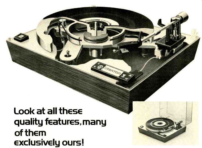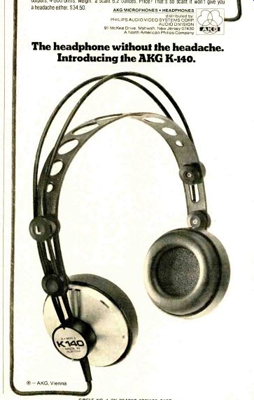 ------------- Akron OH WAEZ 97 5 Cincinnati OH WGUC 90.9 Edmond OK KWHP 97.7 Los Angeles CA KGBS 97.1 New York NY WQXR 96.3 Seattle WA KIXI 95 7 Albany NY WHSH 106.5 Collegeville MN KSJR 90.1 Fairmont NC VVFMO 100.9 Los Angeles CA KI00 100.3 New York NY WRFM 105.1 Skokie IL WCLR 101.9 Allentown PA WFMZ 100.7 Columbus GA WEIZ 100.1 Flint MI WGk1Z 107 9 Los Angeles CA KPFK 90/ Normal IL WGLT 91.7 St. George SC WPWR 959 Alta Vista VA WKDE 105.5 Columbus OH WCOL 923 Fort Wayne IN WkIEF 97.3 Lancaster PA WDAC 94.5 Opportunity WA KZUN 96.1 St. Louis MO KCFM 937 Arlington TX KAMC 94.9 Columbus OH WOSU 98.7 Fort Worth TX KWXI 97.1 Lexington VA WLUR 91.5 Paterson NJ WPAT 93.1 Stevens Point WI WSPT 979 Baltimore MD WAMR 106.5 Dayton OH WTUE 104 7 Fresno CA KPHD 955 Louisville KY WCSN 99.7 Philadelphia PA WMMR 93.3 Sylvania OH WOES 105 5 Birmingham Ml WHNE 94.7 Dallas TX KCHU 90.9 Gainesville GA VVCLN 106 7 Louisville KY WLRS 102.3 Portland ME WDCS 97.9 Topeka KS KTPK 106.9 Boston MA WROR 98.5 Dallas TX KTLC 100.3 Grand Rapids Ml WZZM 95.7 Madison WI WYXE 92.1 Richmond VA WEZS 103.7 Tuscaloosa AL WUOA 95 7 Boston MA WVBF 105.7 Dallas TX KVIL 103.7 Hanover NH WDCR 99.3 Maine FL WAIA 97.3 Rochester NY WCMF 96.5 Utica NY WOUR 96.9 Buffalo NY WDCX 99.5 Dallas TX KZEW 97.9 Hartford CT V1i TIC 965 Manassas VA WEZR 106.7 Rochester NY WEZO 101 3 Washington DC WAMU 885 Buffalo NY WBEN 102.5 Denver CO KBPI 105.9 Henrietta NY WITR 89.7 Memphis TN WKNO 91.1 Saline MI WIOB 102.9 Washington DC WASH 97.1 Carbondale IL WSIU 91.9 Denver CO KLZ 106 7 Houston TX KILT 100.3 Miami FL WAIA 97.3 Salt Lake City UT KDAB 101.1 Washington DC WGMS 107 3 Charlotte NC WEZC 104.7 Detroit MI WABX 99.5 Houston TX KRLY 93 7 Minneapolis MN KSJN 91.1 Salt Lake City UT KSL 100.3 Washington DC WHUR 96.3 Charlotte NC WROQ 95.1 Detroit MI WOMC 104.3 Indianapolis IN WNAP 93.1 Morgantown WV WAJR 101.9 San Antonio TX KEXL 104.5 Washington DC WMAL 107 3 Chicago IL WFMT 98.7 Detroit MI WJZZ 105.9 Jackson MS WSLI 96.3 New Orleans LA WEZB 97.1 San Diego CA KGB 101.5 Wilkes-Barre PA WYZZ 92.9 Chicago IL WLOO 100.3 Detroit Ml WMUZ 103.5 Kettering OH WVL:D 99.9 New Orleans LA WNOW 101 1 San Francisco CA KABL 98.1 Youngstown OH WYSU 88.5 Cincinnati OH WEBN 102.7 Detroit MI WORS 105 1 Los Angeles CA KBIG 104 3 New York NY WNEW 102.7 Seattle WA KIRO 100.7 --------------- Dolby FM is an improvement we think you will appreciate. And it's happening. 'If you enjoy doing your own hook-ups, you can use an add-on Dolby unit, aided by a simple circuit to change your receiver time-constant to 25 microseconds. Dolby Laboratories Inc., Dolby and the double-D symbol are trade marks of Dolby Laboratories Inc. 1133 Avenue of the Americas New York NY 10036 Telephone (212) 489-6652 Telex 125797 Cables Dolby labs New York 346 Clapham Road London SW9 Telephone 01-7201111 Telex 919109 Cables Dolby labs London ![]() ![]() StantonInstant Success-- the NEW Stanton Gyropoise turntable. Look at all these quality features, many of them Exclusively ours! 1. Gyropoise-frictionless magnetic suspension of the platter. 2. Die cast aluminum T-Bar for sturdy structure. 3. 2-Speed changer for 33 rpm and 45 rpm playback. 4. 24-Pole synchronous high torque motor. 5. Belt drive for noiseless operation. 6.12" die cast machined high polish .aluminum platter. 7. Unipoise '-single point tone arm suspension. 8. Anti-skate control adaptable to all types of styli. 9. Magnetic hold bar for tone arm convenience. 10. Stylus force slide (range 0--4 grams). 11. Stanton state-of-the-art stereo or discrete cartridge. 12. Viscous damped cueing control for feather-light lowering of stylus. 13. Handsome walnut veneer base (comes complete with dust cover). ADDITIONAL FEATURES: (a) Comes equipped with low capacitance cables (b) Wow and Flutter-< .07% din 45507 weighted (c) Rumble---60 dB din 45539 weighted It's the important exclusive features that make the difference. Only Stanton Turntables have Gyropoise, the patented frictionless magnetic suspension bearing-thus the platter makes no vertical contact with the body of the structure. This isolation eliminates vertical rumble. Only Stanton Turntables have Unipoise, the patented single point tone arm suspension. The arm is supported by a single pivot for both lateral and vertical movement. Only Stanton Turntables come equipped with a state-of-the art Stanton cartridge, either the 681 Triple-E calibrated to the tone arm for stereo playback, or the magnificent 780/4D0 for discrete. Bottom view shows simplicity )f See your franchised Stanton dealer for a demonstration of this great new product. MADE IN U S A For further information, write: Stanton Magnetics, Inc., Terminal Drive, Plainview, N.Y. 11803. Stanton ![]() AKGA lot of headphones hurt. After a few minutes they begin to weigh you down. A few minutes longer, and they start building a tiring pressure on your ears. They hurt too much to keep on your head. Or you can slip on the new lightweight AKG K-140 headphones. They automatically adjust to the contour of your head. (With our exclusive Cardair swivel and supra-aural design, the 140 doesn't have to make a squeeze fit.) So there's no ear pressure. And no thumping head. You can listen for hours. Painlessly. The 140 also lets you enjoy music at high sound levels without punishing your ears. Yet, you can hear your environment because the 140 won't isolate you. After all, music isn't played in a vacuum. But don't worry, no one will be disturbed when you wear a 140. We designed the 140 for professional monitoring. Which means wide bandwidths and low distortion, and sound pressure levels over 115 dB. The 140 is compatible with all outputs, 4-600 ohms. Weight: a scant 6.2 ounces. Price? That's so scant it won't give you a headache either. $34.50. AKG MICROPHONES HEADPHONES distributed by: PHILIPS AUDIO VIDEO SYSTEMS CORP., AUDIO DIVISION, 91 McKee Drive, Mahwah, New Jersey 07430. A North American Philips Company The headphone without the headache. Introducing