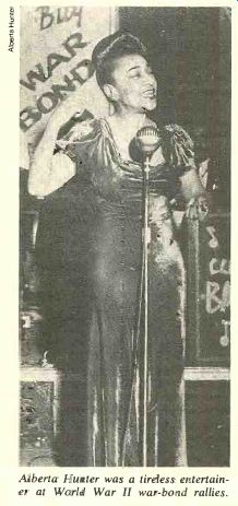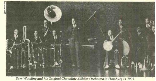 ------------- Alberta Hunter was a tireless- entertainer at World War II war-bond rallies. ---------- Sam Wooding and orchestra appeared at this year's Zurich International Jazz Festival. ----- Sam Wooding and his Original Chocolate Kiddies Orchestra in Harrburg in 1925. AFTER the breakup of the Chocolate Kiddies, Wooding decided to stay in Europe with his band. They played all over the Continent, visited Moscow and Leningrad (decades before Benny Goodman's allegedly pioneering trip there in the Sixties), and even took a "side trip" to South America via Africa. In 1925, the band made a series of recordings for Vox in Berlin (thus becoming the first black American band to record outside of the U.S.), followed, in 1926, by a series for the German Polydor label, ten imaginative sides recorded for Parlophone in Barcelona in 1929, and numerous Paris sesions for Patine and Polydor. While Wooding spread his jazz to different parts of the world, Alberta Hunter, still vacationing in Monte Carlo, received a telegram from Noble Sissle suggesting that she make a stop over in London to perform at a much-heralded, star-studded, flood-relief benefit. "I jumped at the chance," she recalls, "because I had wanted to per form in England but couldn't get the required work permit." As luck would have it, the benefit was attended by Os car Hammerstein II and Jerome Kern, who obviously liked what they heard. "I was staying with Marion Anderson, and Mr. Hammerstein called me there the next day, asking me to come down to the Drury Lane Theatre. Next thing I knew I had the part of Queenie in the London production of Show Boat, which had a wonderful cast, including Paul Robeson, Edith Day, and Sir Cedric Hardwicke."