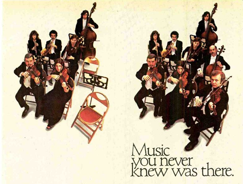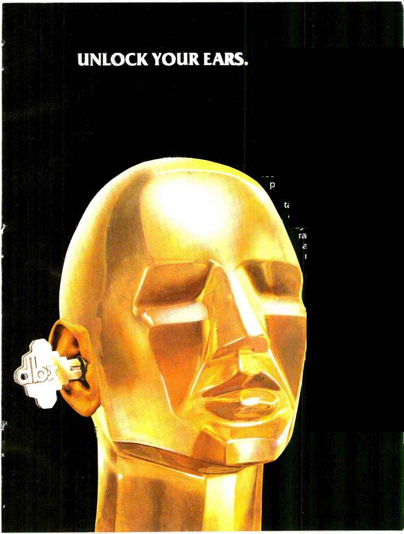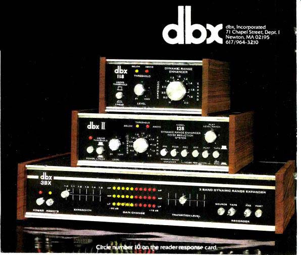 ADC ![]() ![]() Music you never knew was there. Dbx![]() ![]() ![]() ![]() ![]() Suppose you're in an art museum and find half of every picture covered with masking tape. Outrageous? Sure. But you listen to music the same way. Crescendos and pianissimos are sandwiched and crowded towards the middle. The villains are the recording and broadcast processes--tapes, records, AM/FM. They have limitations that sacrifice almost half the dynamic range--the range between quiet and loud--of all the music you hear. But now there is a way to unlock these processes ... so your system can let you hear what you would actually hear at a live performance. A few words about an amazing instrument The human ear. It outperforms the best studio tape recorder by about 50%. The least sound it can hear is about 0dB of sound pressure level (or decibels, which is a scale for measuring the loudness, or quietness, of sound). The loudest sound it wants to hear is around 130dB. This gives it a dynamic range--the sound space if you will, between quiet and loud--of about 130 dB. The professional studio tape recorder has a dynamic range of only about 58 dB. And there lies the problem. A professional tape recorder "hears" a lot less than you do. The problem--compressed sound How does a recording engineer squeeze a musical performance with a range of 100 dB into a recording range of 58 dB? He can restrict the loud and quiet passages. Or he can squeeze. Push the quiet parts up, making them louder. Then push the louds down, making them more quiet. Until everything is compressed into a 58 dB range. Who cares? Your ears. They know what a live performance is like. So they can tell when compression blurs the sharp edge of percussive attacks, muddles the contrasts between quiet and loud instruments, and sacrifices definition. And the more compression, the more the music sounds flat and pinched, almost two-dimensional. The solution--decompressed sound Reverse the process. Simply by making quiet sounds more quiet and loud sounds louder, the way they are in a live performance, your system can pack your music with vitality and excitement. Realism, if you prefer. This is called expansion. The contrast between quiet and loud becomes startling, and musical performances approach the electrifying intensity of a live concert hall. The device that achieves this is called a dynamic range expander. A few words about another amazing instrument The dbx 3BX dynamic range expander. It's more than a state-of-the-art expander. It is the state of the art. Other companies' expanders operate only on a portion of the dynamic range and damage true musical perspective. The dBX, however, Its a true linear expander. It uniformly expands the dynamic range of all levels and all frequencies. Key elements are a patented rms detector which accurately senses the dynamic content of your music, and a voltage controlled amplifier which it instructs to increase or decrease level. Moreover, the 3BX separates the frequency spectrum into three bands and expands each individually. By knowing at any given instant which bands require expansion, the 3BX achieves stunning clarity and musical depth. It's almost like having a Hi-Fi system for each instrument Listen to music through a 3BX. What you're hearing is actually better than the broadcast source--better than the tape, better than the record, better than the FM signal. Definition is breathtaking. You'll hear the sharp attack of a brass section. The soft brushwork of a drummer. Every nuance and texture of a symphony string section will have incredible presence. And crescendos will build with conviction and amazing depth. You not only hear what you're getting, you see what you're getting The more you listen to the 3BX, the more you'll appreciate it. You can set the linear expansion for anything up to 50% more dynamic range. There is a pre/post switch for taping and/or listening. But the most visually intriguing part of the 3BX is the LED indicator bank for each of three frequency bands which shows you just where and how much expansion you're enjoying. You'll see the board light up when a double forte note jumps out of the speaker. Or with the sudden shout of a rock singer. Or when you hear a string section and it feels almost thick with depth and you not only become more aware of the harmonics, but are able to pick out individual instruments. And the transition level control lets you center the program on the display, so you can see exactly what is going on. The only component you won't have to upgrade It will make no difference how modest, or expensive, your system is. The 3BX produces dramatic results with any system because it attacks the bane of all systems--the program source. So while you upgrade your system, the DBX upgrades what goes into your system. Be prepared for a rather pleasing side effect The loss of about 20 dB of noise inherent in most records, tapes and FM broadcasts. As a matter of fact, noise approaches inaudibility. There's more to hear After you've heard the 3BX, listen to the dbx 118 linear dynamic range enhancer. It not only expands the dynamic range of sound, like the 3BX, for better listening, it can also compress the dynamic range of sound for background music for the home and special recordings. And if you're into copying your tapes and records onto cassette or open reel, you'll want the dbx 128. It makes tape copies that sound better than the records. It has two separate signal processing units in one. The first is a dynamic range enhancer for expansion or compression of sound sources. The second is a dbx II tape noise reduction system which allows wide dynamic range material to be recorded on tape with no audible noise added by the tape recording process. A challenge What we say here is nothing compared to what your ears will tell you. As a matter of fact, we'd like to offer you a friendly challenge. If you think your system is so good it can't be improved upon, drop in on your dbx dealer and