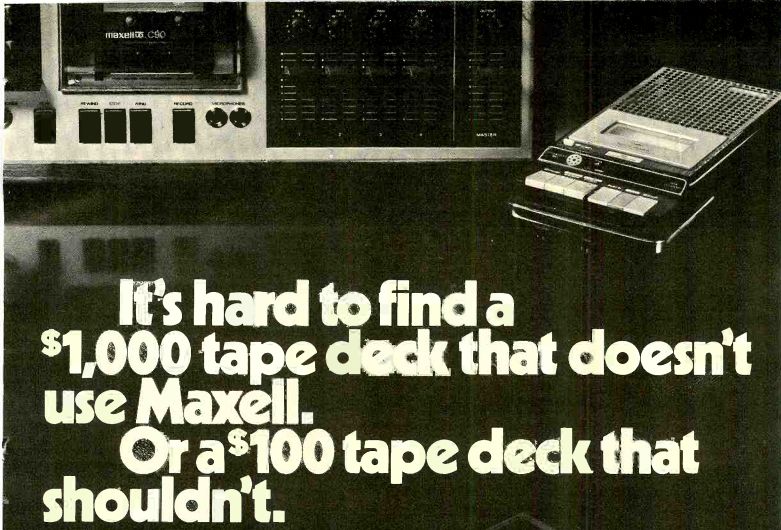 Dual![]() ![]() Yes, the new Dual 604 is direct, drive. Now let's talk about something really important. You may have noticed that most turntable stories begin and end with the drive system. The tonearm is more or less an afterthought. But not with Dual. Because the tonearm can make a big difference in how records sound and how long they last. Which is why Dual is very serious about tonearm design and performance. And why we can be very serious about tonearms in our advertising. Let's consider the 604 tonearm. The straight-line tubular design provides maximum rigidity with minimum mass. The four-point gimbal centers and pivots the tonearm precisely where the vertical and horizontal axes intersect. And the counter balance houses two specially-tuned anti-resonance filters that absorb parasitic resonances originating in the tonearm/cartridge system and chassis. Operation s semi-automatic, with another unique Dual difference: the mechanical sensor. Switch it in and you feel when the stylus is positioned precisely over the 12" and 7" lead-in grooves. At the end of play, the tonearm lifts and returns to its post, and the motor shuts off, Automatically. Now let's talk about the drive system. It employs a newly developed DC electronic motor with a highly sensitive CMOS regulator circuit and integral frequency generator. Platter speed is checked against rated speed 120 times per revolution. Wow and flutter are less than 0.03 percent, rumble is better than 70 dB. Well beyond the limits of audibility. But the important story with any turntable is simply this. The drive system merely turns the record. It's the tonearm that plays it. Dual 604, semi-automatic. less than $260. Dual 62t. fully automatic plus continuous repeat, less than $300 Both with base and cover. Actual re-sale prices are determined individually and at the sole discretion of authorized Dual dealers. Dual For the life of your records United Audio, 120 So. Columbus Ave., Mt. Vernon, NY 10553 USA Alison![]() The Pulsating Hemisphere A pulsating sphere represents one ideal of loudspeaker design. Such a speaker could be made any size desired and would still have completely omnidirectional output at all frequencies. For use close to a room wall, a pulsating hemi sphere would be equivalent. But in practice it has always been necessary to compromise between dispersion and output capability. Making a normal tweeter smaller increases its high-frequency dispersion, but reduces the amount of acoustic power it can radiate. With all traditional horn, cone, and piston-type tweeters (including domes) it is not possible to achieve really satisfactory performance in both respects simultaneously. Flat-panel radiators are especially poor in high-frequency dispersion. And those of cylindrical shape, while having excellent horizontal dispersion, do not do well vertically. There is now an elegant way to avoid this "either/or" dilemma. The Convex Diaphragm tweeter (used in all Allison loudspeaker systems) has as much cone area as a piston 11/16 inches in diameter, and can radiate as much acoustic power. But it does not operate as a piston. Generally convex in shape, the side of the cone curves inwardly to the voice-coil diameter, and the outside edge is fastened securely to the mounting plate. Because there is no compliant suspension the entire cone surface is forced to flex (changing its radius of curvature) as the voice coil moves axially. Every point on the cone moves diagonally, with an in-phase component of motion perpendicular to the voice-coil direction as well as a component parallel with it. The tweeter thus simulates the motion of a pulsating hemisphere to a remark able degree. Complete technical specifications for all Allison loudspeaker systems, and a statement of Full Warranty for Five Years, are available in our new catalog (free on request). ![]() ALLISON ACOUSTICS 7 Tech Circle, Natick, Massachusetts 01760 Radio Shack![]() Maxell? TDK? Scotch? BASF? Memorex? Ampex? Sony? Suddenly there's a new name that eliminates the confusion (and ad-fusion): "I'm Peter Nero. I kid you not. Supertape Gold is everything they say it is even though the guy who wrote the ad is a personal friend." Could a Radio Shack own-make cassette tape be the greatest new formula in ferric-oxide 5-step-calendering audio tape? And isn't it neat that Supertape Gold requires no special bias settings? Well, we've built the tape, we've compared it in our labs with the summa cum hi-fi brands named above. And now it's your turn to see if your ears and your tape head confirm our findings. Fortunately, the price for your experiment is trifling. If we're right, and Supertape Gold is indeed a breakthrough, then we both win. You get cleaner sound. And Radio Shack gets to be your cassette tape company--all 6,444 of our American and Canadian stores and dealers. This a consummation devoutly to be wished! SUPERTAPE-GOLD. Sold Only at: Radio Shack-- A Division of Tandy Corporation, Fort Worth, Texas 76402 USA