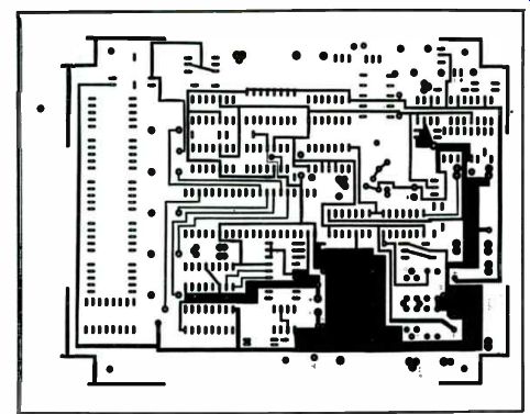 The 5-digit display is controlled by the digit multiplexer internal to IC3. An LED to the immediate left of the display is on for negative measure ments. The circuitry is complicated by the requirement of an accurate positive and negative voltage reference for dual-slope integration. A "flying capacitor" technique is used to bias all input voltage to IC11 to + 1 volt. This way, a ground level appears to be - 1 volt, and only a positive reference is required. Another complication is that IC3 does not have the drive capability for the numeric readouts. Therefore, a 7447 decoder driver must be added for segment and discrete transistors must be used for digit drivers. Resistors are required to limit base currents and additional resistors are required to limit segment current. In order to control the variable gain amplifier, sample switch and autozero circuit, analog switches must be used. The three analog switch packages are powered from a ±- 8.2v supply. The control input to these switches must also be ±8.2v. Therefore, a level converter is necessary to convert the +5 ground level of IC3 to ±8.2v. The three LM339 ICs were added for this purpose. Leftover portions of the LM339s were used for gating functions. IC3 has inputs which provide the capability of changing the upper and lower limits of the auto-range circuitry. Since all three functions use different limits, a 4052 (IC4) multiplexer was required. IC4 senses the mode of operation and applies the desired range limits to IC3. For example, the upper range for volts in nnnn.n and the upper range for ohms is nn.nnn. The ±8.2volt supply was developed experimentally. A 555 (IC7) oscillator drives the primacy of a transformer. Each side of the center-tapped secondary forms a half-wave recitifier circuit with one being positive and the other being negative. Each voltage is regulated at 8.2 volts to limit the maximum output voltage. Since IC3 is a digital multimeter, not a digital voltmeter, use of existing circuitry to measure resistance and current is simplified. In addition to providing two inputs to IC3 for the function desired, slight modification to the variable gain amplifier is required. When reading ohms, the unknown resistor becomes the feedback resistor for IC12, and the feedback resistors become the input resistors for IC12. Current measurement is made possible by measuring the voltage drops across a 1-ohm resistor. Construction. The use of a double-sided plated-through printed circuit board simplified construction. For a complete parts list, see Table 7-2. The most important decision, prior to inserting parts as shown on the assembly drawing (Fig. 7-20), is to consider the mounting of the PC board. The front panel is 3/4 " from the board. It was with this in mind that most capacitors were mounted on the bottom side. The transformer also presents a problem and is mounted on the bottom. The four 18-turn pots can be mounted on the bottom. This will permit calibration without removing the front panel. The rotary switch must be insulated from the board using nonconducting washers. Do not remove the nut on the switch; doing so can change the stop pin for the switch. Wiring from the switch to the PCB is simple, since the points on the board contain the same number as the points on the switch. The common lugs are slightly recessed. When wiring to a common lug, go to the number specified and use the recessed lug (the one closest to the shaft). Switch lug-to-switch lug wiring should be done according to the switch wiring diagram (Fig. 7-17). The AC/DC toggle switch should be wired as shown in Fig. 7-17. The PCB is marked for easy switch-to-PCB wiring. Be careful when installing this switch in the panel as it is easy to put it in upside down.